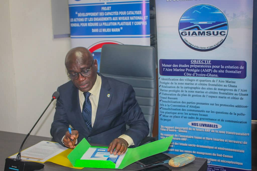 Cette activité intervient dans le cadre de la mise en œuvre du projet de Gestion de l’Aire Marine et côtière de la région du Sud-Comoé (#GIAMSUC), porté par le Ministère de l’Environnement à travers le CIAPOL et financé par la Convention d’Abidjan, l’Union européenne en Côte d’Ivoire et le Programme des Nations Unies pour l’Environnement (#UNEP). Il vise à lutter efficacement contre la perte de la biodiversité par la protection des espèces menacées, le développement du réseau AMP, la régulation du tourisme côtier, la lutte contre la pollution marine et la lutte contre la pollution plastique.